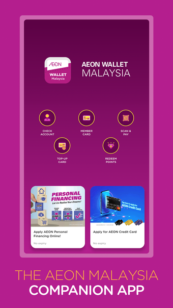 باستخدام محفظة AEON، يمكن للمستخدمين مسح رموز الاستجابة السريعة لإجراء المدفوعات في جميع متاجر AEON وكسب النقاط أينما ذهبوا. يقوم التطبيق بتخزين جميع نقاط AEON الخاصة بك، والتي يمكن تحويلها بسهولة إلى نقد. علاوة على ذلك، يوفر التطبيق إعادة شحن فورية في أي وقت وفي أي مكان، دون عناء ورسوم إضافية. يمكن للمستخدمين أيضًا التحقق من رصيدهم وسجل المعاملات في الوقت الحقيقي.